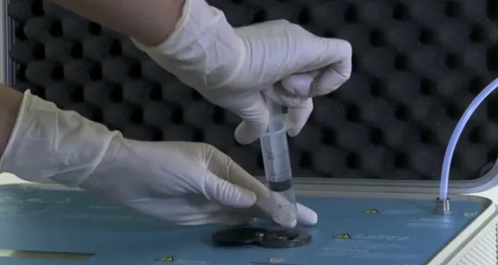L’ozono così prodotto viene introdotto con una siringa all’interno della sacca contenente il sangue. Man mano il sangue e l’ozono si miscelano e il sangue, da blu scuro, diventa rosso, segno della presenza dell’ozono nella miscela.